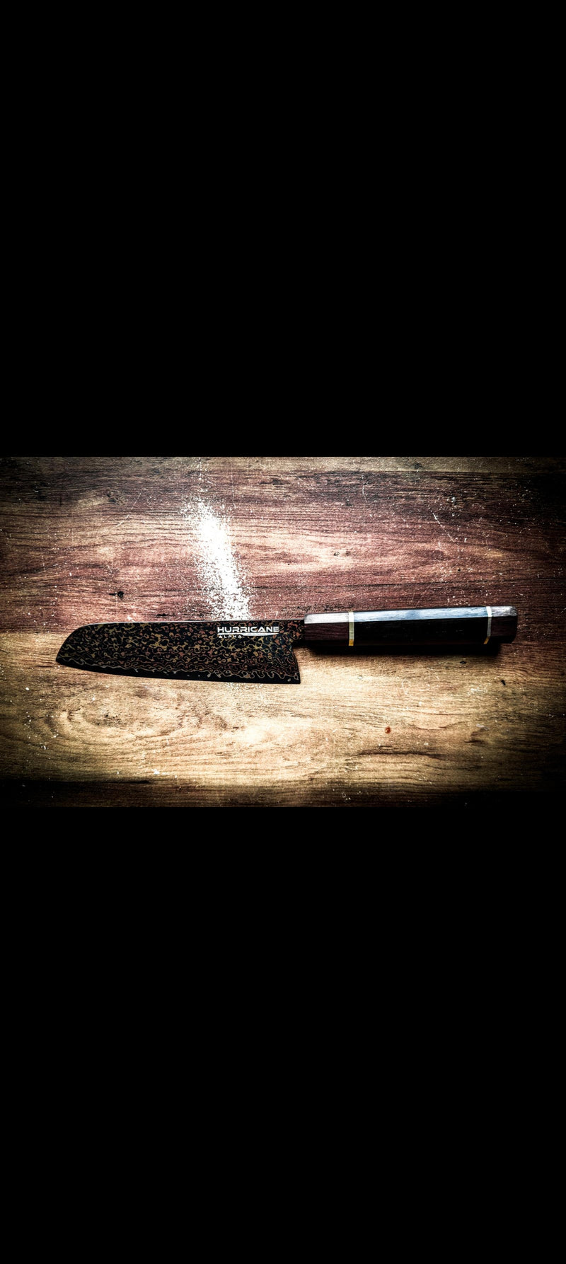 This is a stunning knife with a stabilised wood handle and a VG-10 copper core